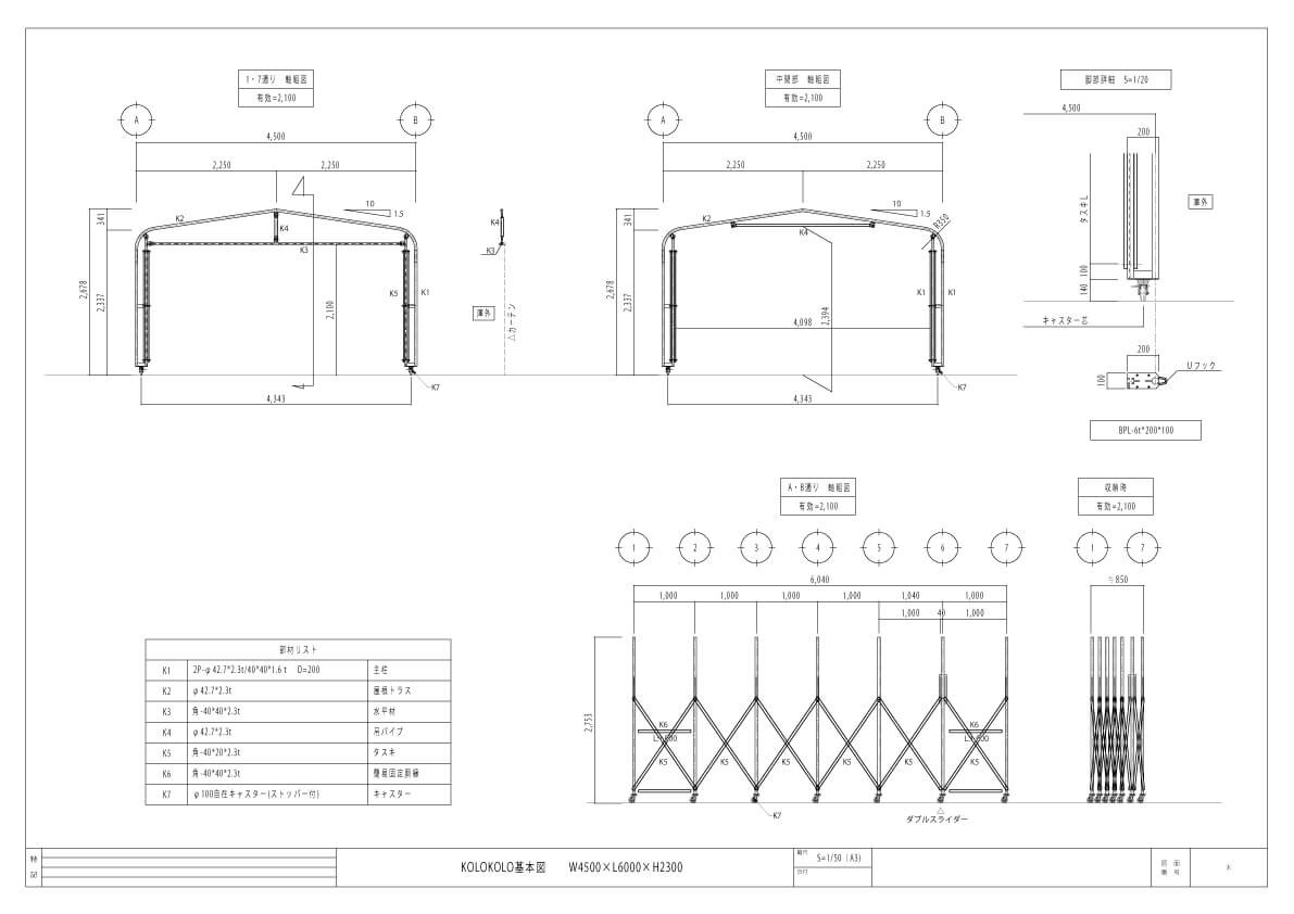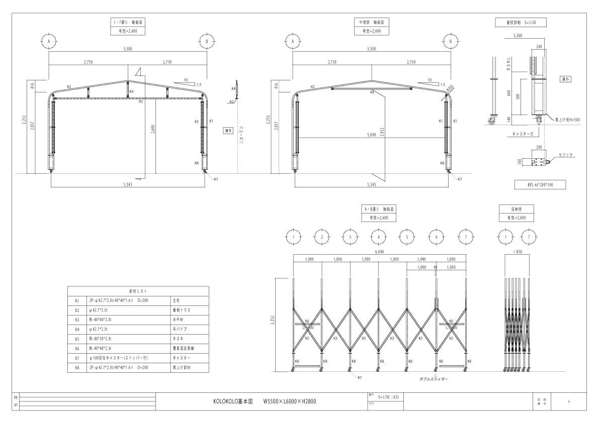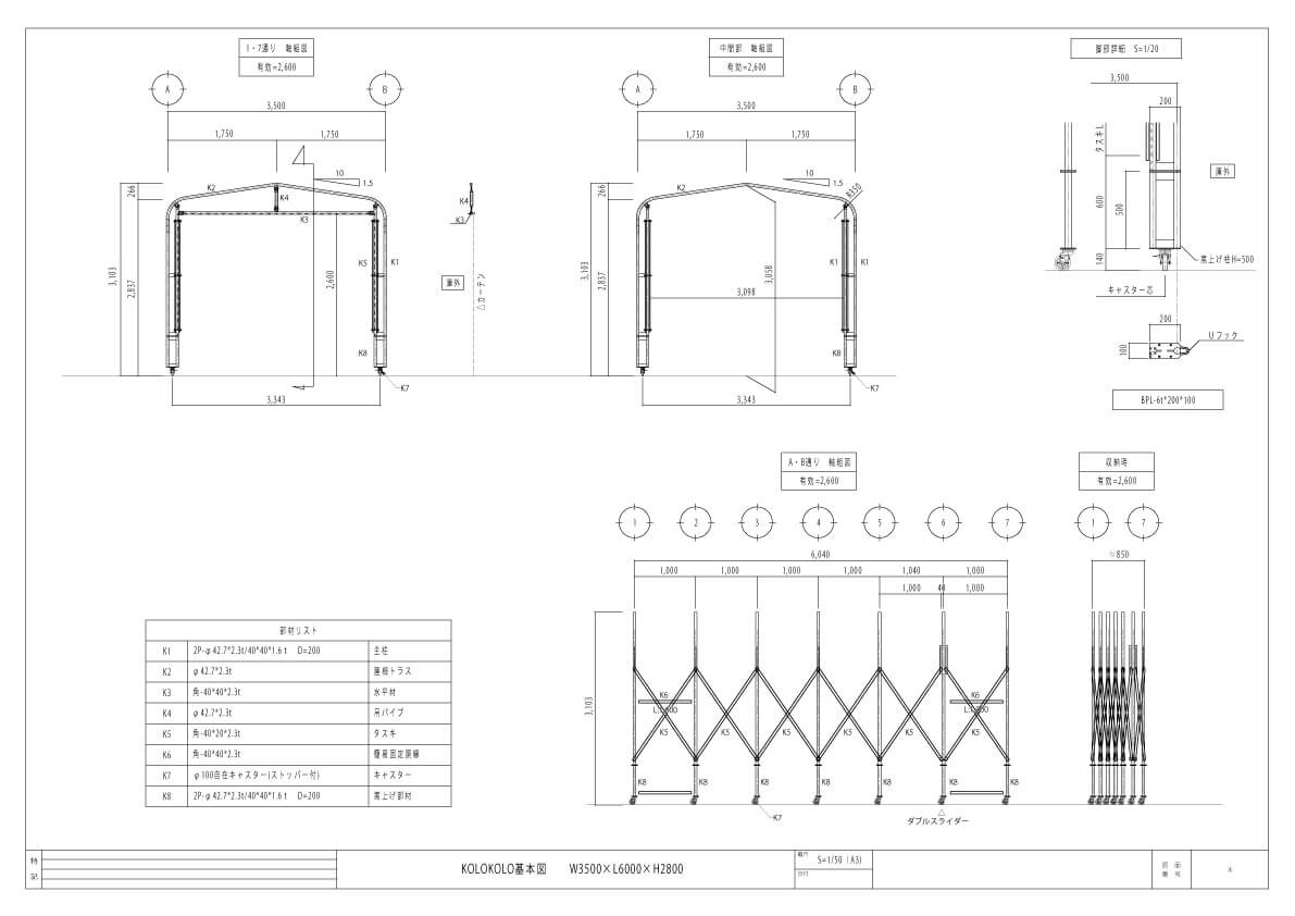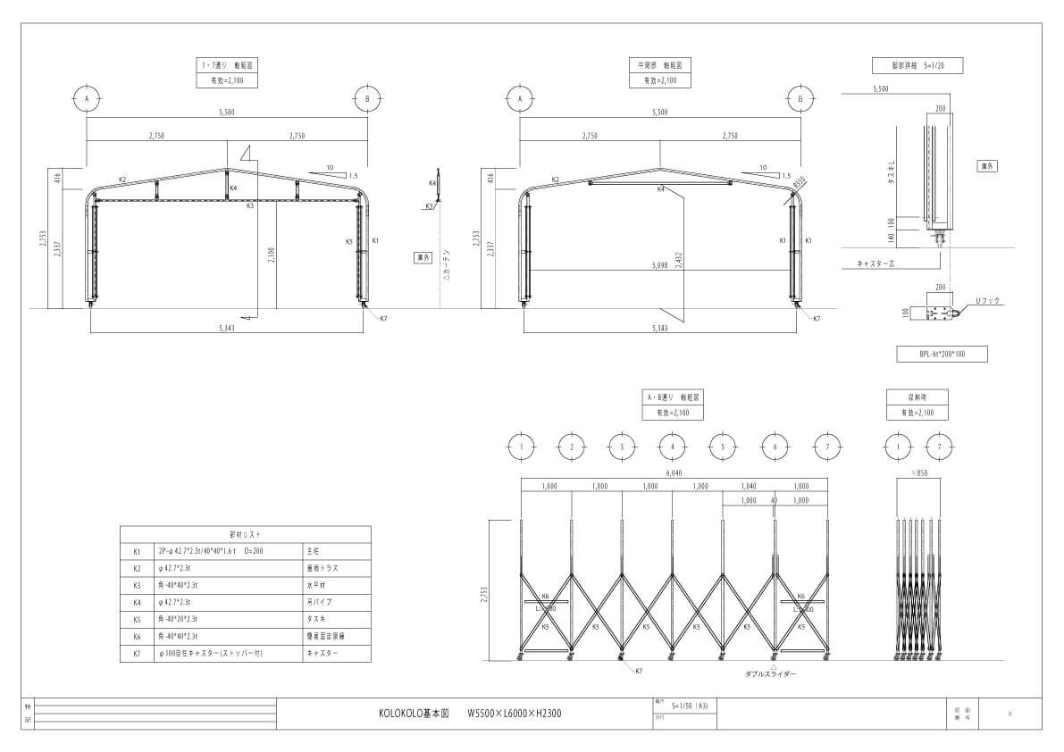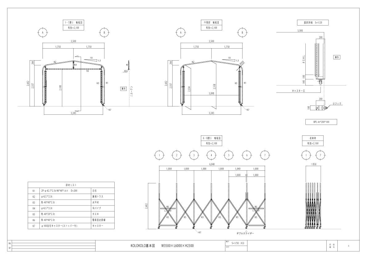 | 間口【W】(有効寸法) | 3500(3098) | 4500(4098) | 5500(5098) | |
