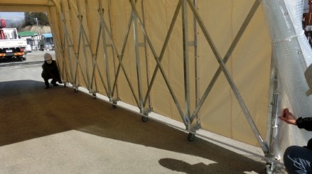 ダブルフレーム構造と1mの短い間隔で配置された1スパン独立構造のフレームにより、移動時、伸縮時、設置時において安定した利用が可能です。