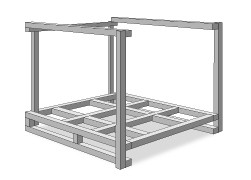 積載面の形状が 井桁 となっております。積載面の角パイプが均等に配置されており、適合サイズのパレットより小さいサイズでも積載が可能です。複数サイズのパレットを使用されている方向けの製品です。