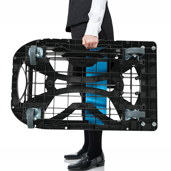 折りたたみ式。スタッキング可能。(ブレーキ付きは立て保管不可)