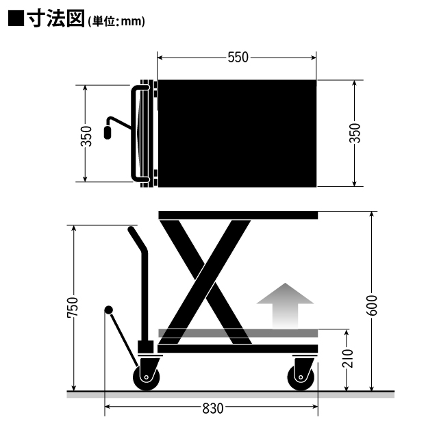 テーブル寸法 長さ×幅:C×D:550×350(mm)
