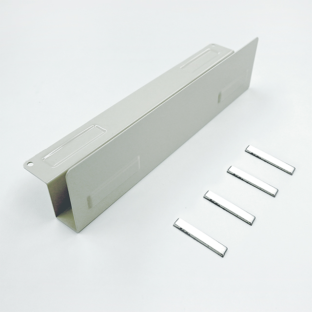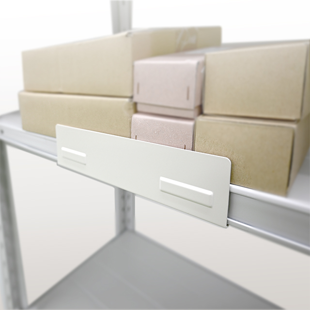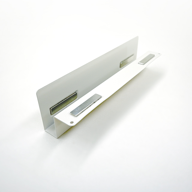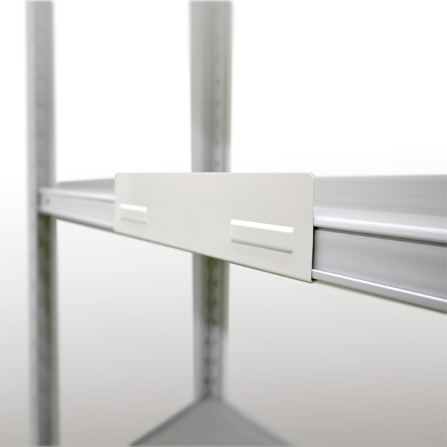 棚板のへりにこぼれ止めを設置し、積載物がこぼれおちるのを防ぐオプション品です。棚板にしっかりとはめこむように取付け、強力マグネットを使ってしっかりと固定できます。